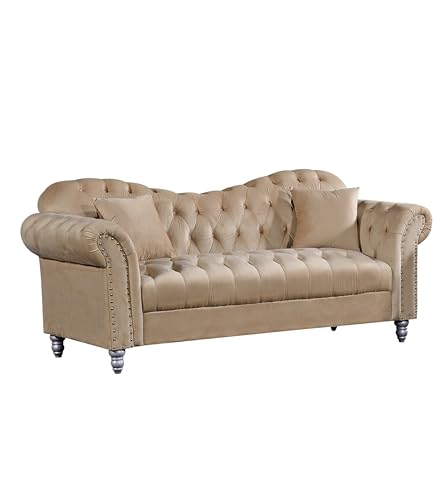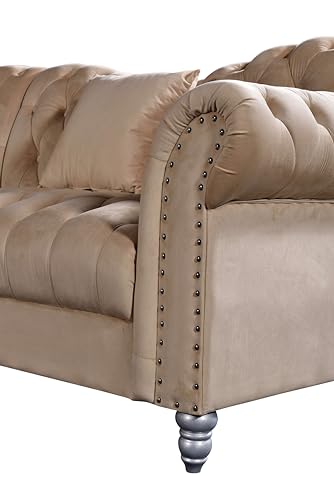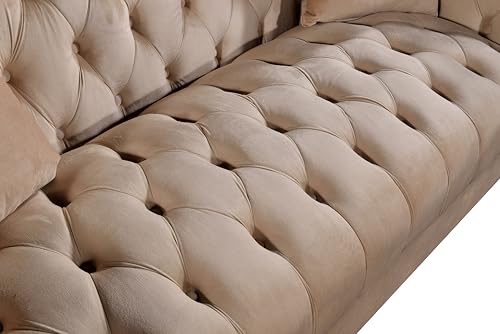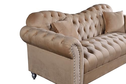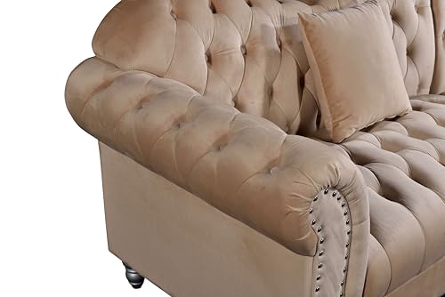 👑 Luxuriöses Design Elegantes Chesterfield-Sofa jeglicher hochwertigem Samt mit klassischer Knopfheftung und dekorativen Nieten – perfekt für moderne Wohnräume.