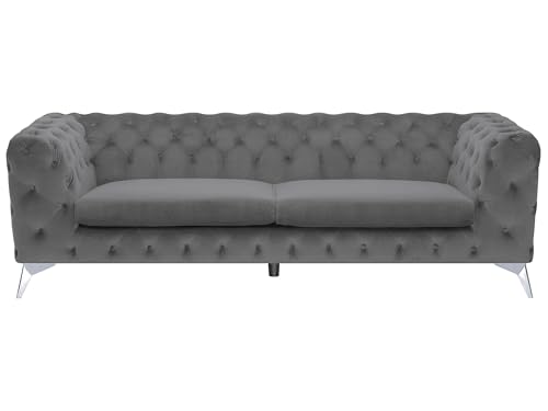 Verwandeln Sie Ihr Wohnzimmer mit dem italienischen Samt-Chesterfield-Sofa – der perfekten Kombination jeglicher Eleganz, Komfort und zeitlosem Stil. Erhältlich denn 2- oder 3-Sitzer und in den Farben Beige und Grau, ist es die ideale Abstimmung für die Gesamtheit, die ein stilvolles und zugleich funktionales Möbelstück weiden.