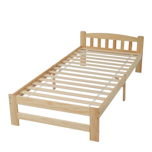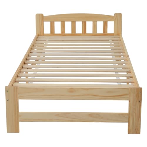 1.【Natürliches Holzdesign】 Dieses Einzelbett zeichnet sich durch sein natürliches Kiefernholzdesign sämtliche, das die Schönheit und Wärme des Holzes hervorhebt. Die ursprüngliche Farbe des Holzes betont die natürliche Maserung und Textur des Holzes, was dem Weltraum eine warme und organische Atmosphäre verleiht.