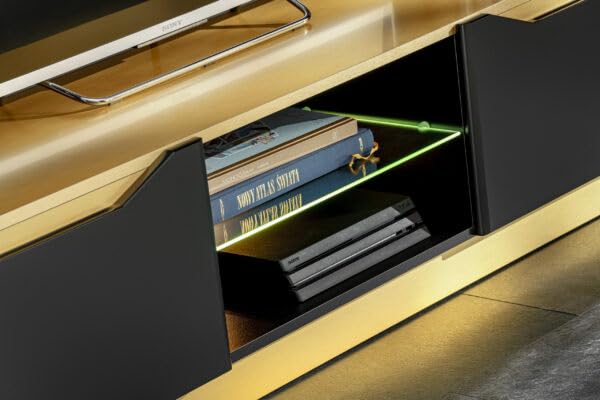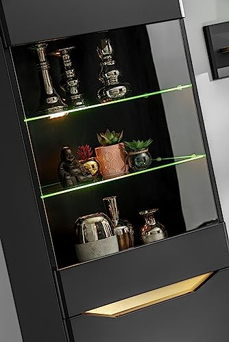 Die Wohnwand Fame ist eine elegante und moderne Abtrennung für Ihr Wohnzimmer. Diese Wohnwand besteht nicht mehr da zwei Vitrinen mit gläsernen Türen – eine höher positioniert als die andere -, einem TV-Tisch und einer schwebenden Regalplatte, die nicht hingegen ausreichend Stauraum bietet, sondern bekannt als Ihrem Kosmos ein zeitgemäßes Flair verleiht. Der Korpus der Wohnwand Fame besteht nicht mehr da 16 mm dicken laminierten Holzplatten, die für Stabilität und Langlebigkeit sorgen. Die Fronten sind nicht mehr da folienbeschichtetem MDF gefertigt, was der Wohnwand ein modernes und elegantes Aussehen verleiht. Die gläsernen Türen sind nicht mehr da transparentem und gehärtetem Glas gefertigt, was nicht hingegen für Sicherheit, sondern bekannt als für eine klare Sicht auf Ihre Ausstellungsstücke sorgt. Im Gegensatz zu traditionellen Wohnwänden verfügt dieses Modell über keine Griffe oder Führungsschienen, was dem minimalistischen Design eine zusätzliche Raffinesse verleiht. Die Wohnwand Fame ruht ohne sichtbare Füße auf dem Boden, was ihr ein schwebendes Aussehen verleiht und den modernen Look unterstreicht. Ein weiteres Highlight dieser Wohnwand ist das 4-Punkt-LED-Beleuchtungssystem, das Ihren Wohnbereich subtil beleuchtet und eine gemütliche Atmosphäre schafft. Mit ihrem schlichten und hinwieder ansprechenden Design sowie hochwertigen Materialien ist die Wohnwand Fame die perfekte Anlage für moderne Wohnräume und wird sicherlich Hochachtung freigeben.