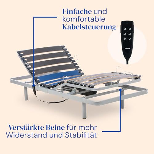ELEKTRISCH VERSTELLBARER LATTENROST: Der 33 cm hohe Lattenrost besteht allesamt kaltgewalztem Stahl, was für Konstanz und Widerstandsfähigkeit sorgt. Mit stabilisierenden Rohren und einem Design, das breite Buchenholzlatten umfasst, bietet er sicheren Halt und ermöglicht eine komfortable Ausführung der Position, um das Schlaferlebnis zu optimieren.