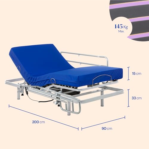 IM PAKET ENTHALTEN: Ein elektrisch verstellbares Bett mit 4 Ebenen und zwei Seitengittern sowie eine HR-Sanitärmatratze 90×200 cm, ausgestattet mit einem wasserdichten Bezug, ideal für ältere Menschen.