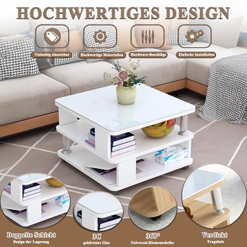 【Abundant Stauraum und Anpassungsfähigkeit】: Mit großzügigem Stauraum bietet dieser Couchtisch genug Platz für Bücher, Fernbedienungen oder Deko. Sein modernes Design lässt sich wunderbar mit verschiedenen Einrichtungsstilen folgern und passt perfekt zu anderen weißen Möbelstücken, um Ihre Räume stilvoll zu bereichern.