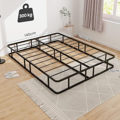 Verbessern Sie die Qualität Ihres Schlafes mit unserem robusten Boxspringbett. Das pulverbeschichtete Metallbettgestell trägt bis zu 300 kg und ist mit 16 Stützlatten für eine gleichmäßige Gewichtsverteilung ausgestattet. Verschraubte Verbindungen umsorgen zusätzliche Stabilität, während rutschfeste Fußpolster Kratzer auf dem Boden abwenden. Die abgerundeten Ecken des Metallbetts erhöhen die Sicherheit und minimieren das Verletzungsrisiko. Dieses Doppelbett ist leicht zu montieren und schnell aufgebaut. Mit seinem modernen, stabilen Design bietet dieses Boxspringbett eine zuverlässige und stilvolle Abtrennung für Ihr Schlafzimmer.