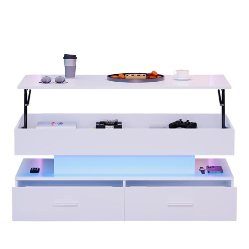 VERSTECKTER STAURAUM: Zusätzlicher Stauraum im Inneren des Tisches durch anhebbare Tischplatte.