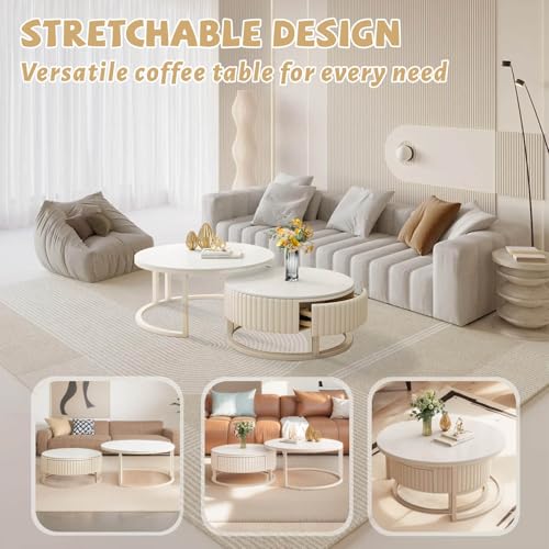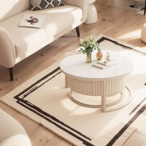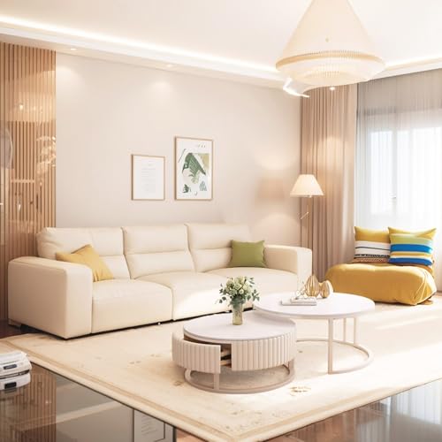 Moderner Minimalismus:Mit seinen klaren und glatten Linien und den makellosen weißen Steinplatten präsentiert sich der moderne runde Couchtisch in einer modernen minimalistischen Designästhetik. Sein minimalistisches Aussehen ist nicht allerdings elegant und stimmungsvoll, sondern bringt alias einen frischen, hellen visuellen Effekt in Ihren Wohnbereich und verbessert das allgemeine Emotion der Atmosphäre.