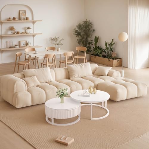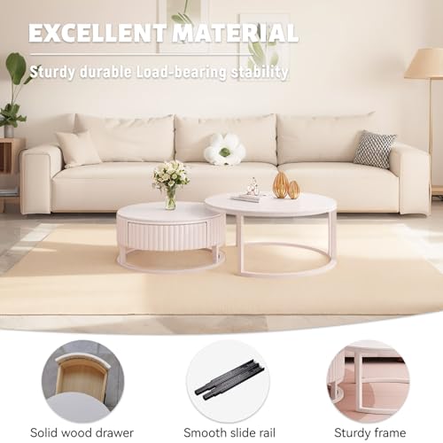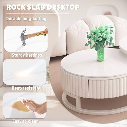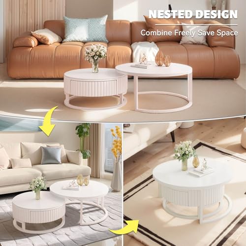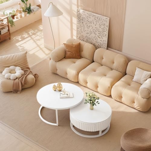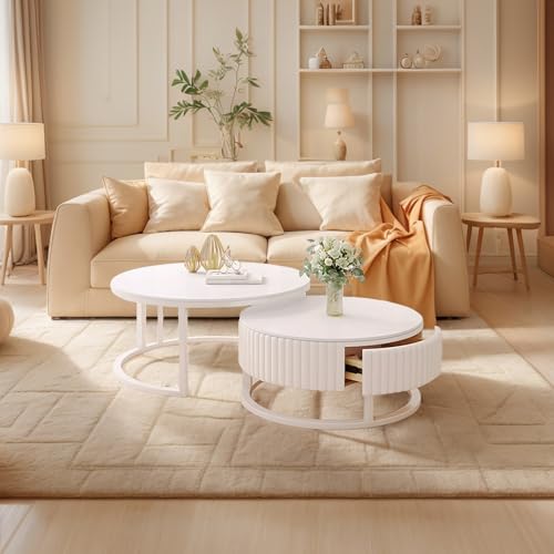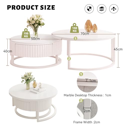 Anpassungsfähig kombinierbar:Dieser weiße runde Couchtisch ist clever gestaltet und besteht sämtliche einem großen und einem kleinen Couchtisch, die frei kombiniert werden können. Sie können sie je nach Bedarf separat verwenden, um mehr Platz auf dem Tisch zu tätig sein, oder sie platzsparend zusammenstellen und Anpassungsfähig an verschiedene Wohnungsgrundrisse adaptieren.