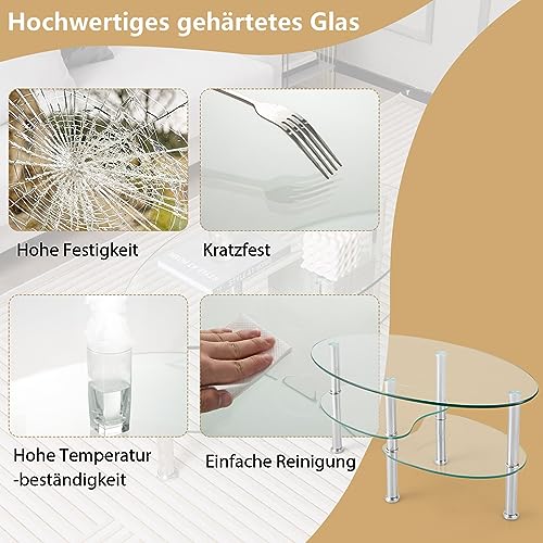 Vielseitig ersetzbar: Der Glastisch kann wie Beistelltisch, Kaffeetisch, Wohnzimmertisch, Couchtisch und dergleichen verwendet werden. Es ist ideal für Essen, Lesen, Malerei, Sehen Filme usw.. Sie können den Glastisch je nach Bedarf in Wohnzimmer, Schlafzimmer order Balkon stellen.