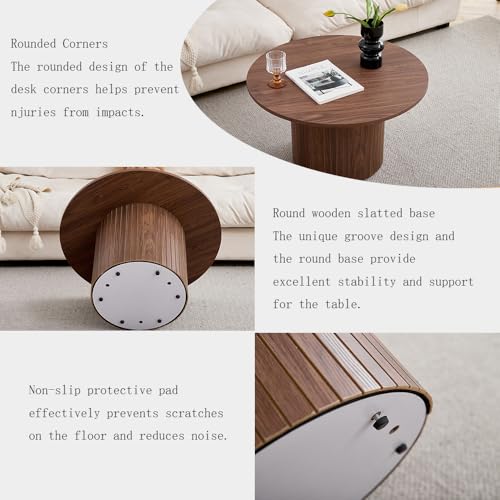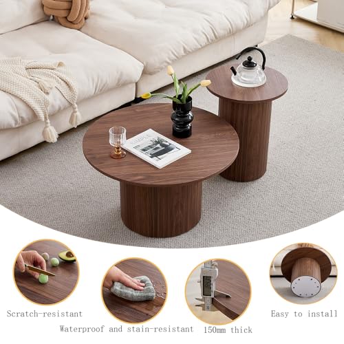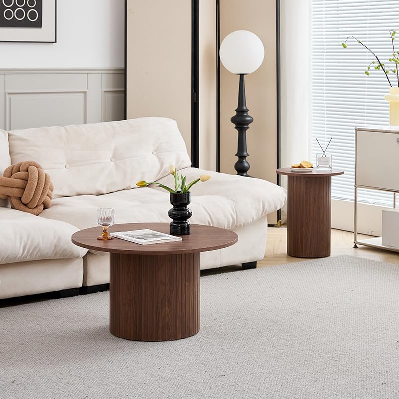 【Hochwertiges Material】 Dieser runde Couchtisch besticht durch einen eleganten Mid-Century-Modern-Stil. Das vertikale Rillendesign unterstreicht nicht daher die Ästhetik, sondern sorgt auch für hervorragende Stabilität und Halt. Unser zweiteiliger Satztisch ist behutsam aus hochwertigem MDF gefertigt, das geruchsneutral und abgehärtet für eine sichere Nutzung ist.
