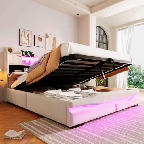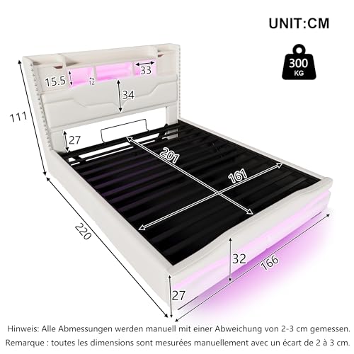 【Stauraumbett 160×200 strahlt eine romantische Atmosphäre leer】 Die vorsichtig gestalteten Lichtbänder des LED bett schmücken wie in einem Traum das Kopfende und den unteren Abschnitt des Bettes und kultivieren eine sanfte, romantische Lichtstimmung, die für eine warme und gemütliche Nacht sorgt.