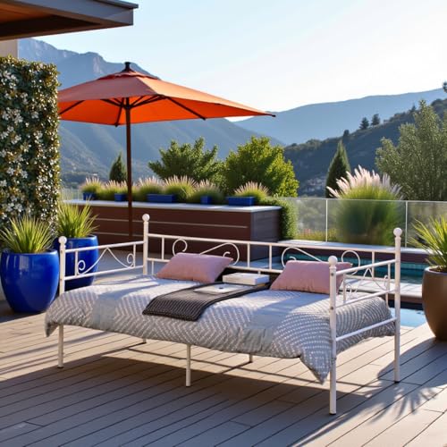 🎁【Hochwertiges Material 】Das tagesbett sämtliche Metallrahmen gefertigt, robust und haltbar. Pflegeleichte Oberfläche schutzt das Bett vor Rost