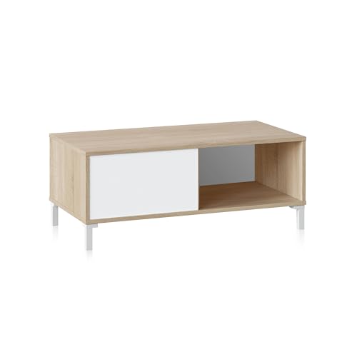 Habitdesign, Couchtisch mit 2 Offenes Fach, Beistelltisch, modernes Design in kanadischer Eiche und Weiß, Maße: 100 x 40 x 50 cm (B x H x T), Modell Brooklyn