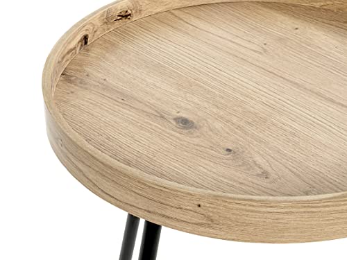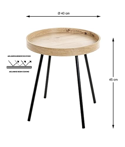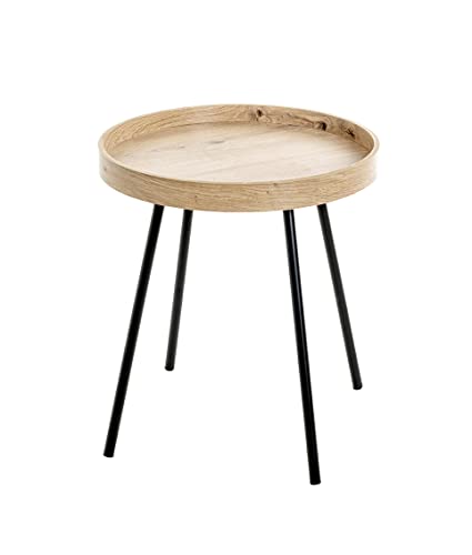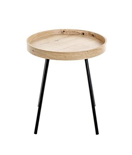 HAKU Möbel Beistelltisch Eiche hell, schwarz, MDF, Metall – Maße: H 45 x Ø 40 cm, Style: Modern