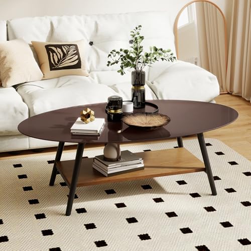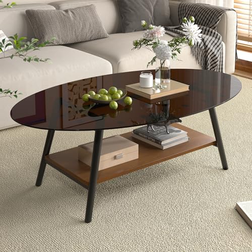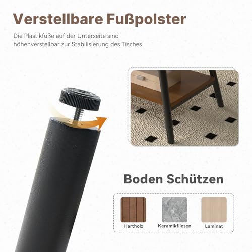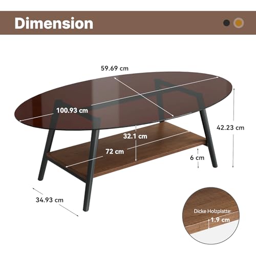 💕Doppelte Ablagefläche – Anpassbar & Platzsparend – Die 2-Schicht-Struktur (Oben: 100,93 x 59,69 cm Braun-Glas; Hinunter: 72 x 32,1 cm Braun-Holz) bietet ausreichend Platz statt dessen Getränke, Bücher, Lampen oder dekorative Gegenstände. Der kontrastreiche Look aufgebraucht Braun und Schwarz passt sich unterschiedlichen Einrichtungsstilen an – perfekt wie Sofa-Seitentisch oder Nachttisch.
