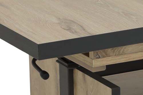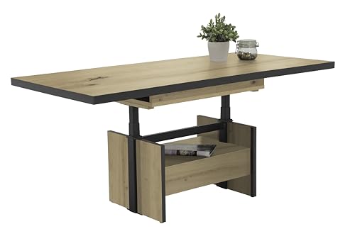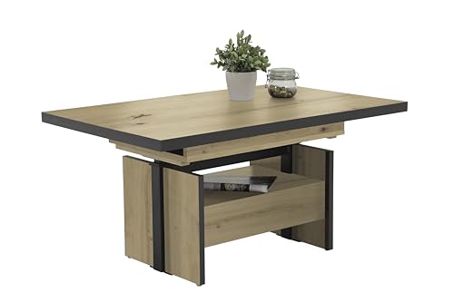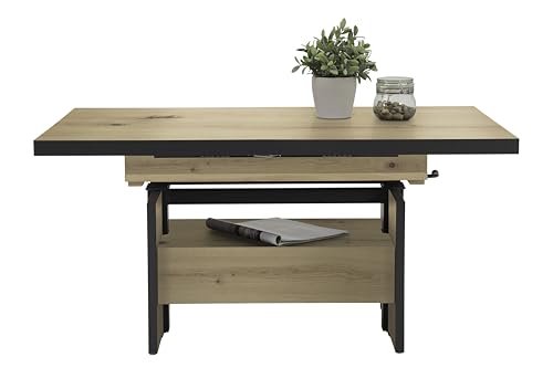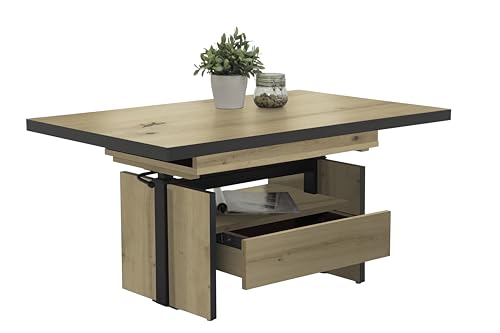 Klassischer Couchtisch Noah mittels Funktionen Tischplatte Dekor Artisan Eiche melaminbeschichtet Ausziehbar mittels seitlichen Auszügen Höhenverstellbar mittels Liftbeschlag auf ESSTISCHHÖHE Großer Ablageboden auch Schubkasten, Wangengestell Holzwerkstoff aufgebaute Maße ca. : B 110-150 x 70 x 54-73 cm Belieferung zerlegt mittels Montagleitung (1 Packstück) Einfacher auch schneller Auftrag Hinweise: Ganz angegebenen Maße sind Circa-Maße Die dargestellten Farben können auf Basis von unterschiedlicher Monitoreinstellungen vom Original leicht abschweifen Pflegehinweis: Der Tisch lässt sich leicht mittels einem feuchten Tuch reinigen. Bitte verwenden Sie keine chemischen Reinigungsmittel.