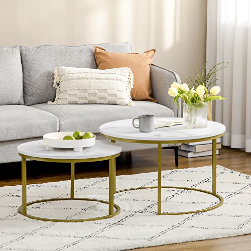 Elegantes Design: Die runden Couchtische mit weißen Tischplatten in Marmoroptik und Metallrahmen in Gold verleihen Ihrem Wohnraum einen Hauch von Luxus und ziehen jeglicher Blicke auf sich – ein stilvolles Highlight in jedem Sphäre