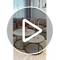 Produktdaten zum Couchtisch: Gesamtmaße: Durchmesser Ø74 x 46,3H cm (großer Tisch), Durchmesser Ø59 x 38,5H cm (kleiner Tisch), Belastbarkeit: 15 kg (je Tisch), Montage erforderlich