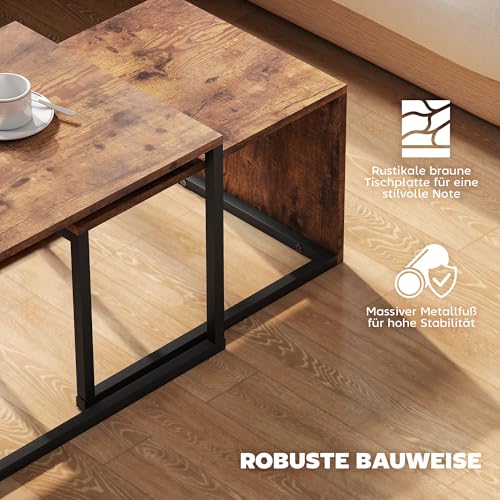 STILVOLLES & PRAKTISCHES DESIGN: Das originelle Couchtisch-Set in Holzfarbe mit schwarzem Sockel bringt eine natürliche und frische Atmosphäre in Ihr Zuhause und sorgt für einen tollen visuellen Effekt, der zu verschiedenen Wohnstilen passt