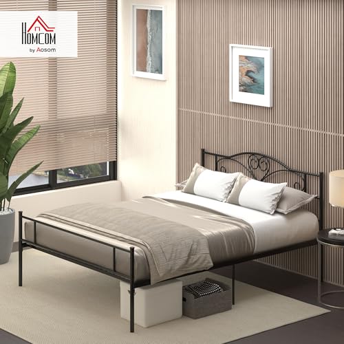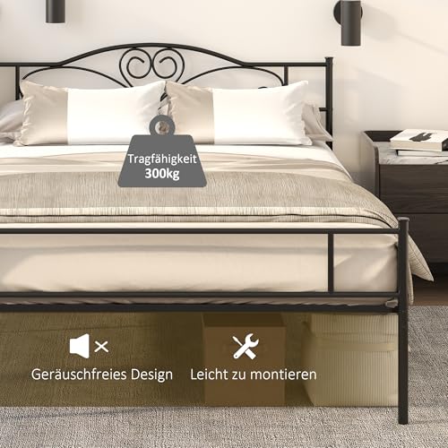 HOMCOM Bett 140 x 200 cm Stahl mit Lattenrost Bettrahmen mit Unterbettaufbewahrung, Kopf- und Fußteil, Doppelbett, Bettgestell, 31 cm hoch, Einfache Montage Schwarz