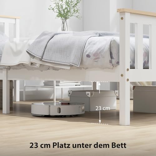 Stauraum darunter dem Bett: Mit einem Freiraum von 23 cm darunter dem Bett bietet dieses Gestell reichhaltig Stauraum und ermöglicht eine einfache Reinigung, ideal anstatt Saugroboter, und hält Ihr Schlafzimmer stets gepflegt und organisiert