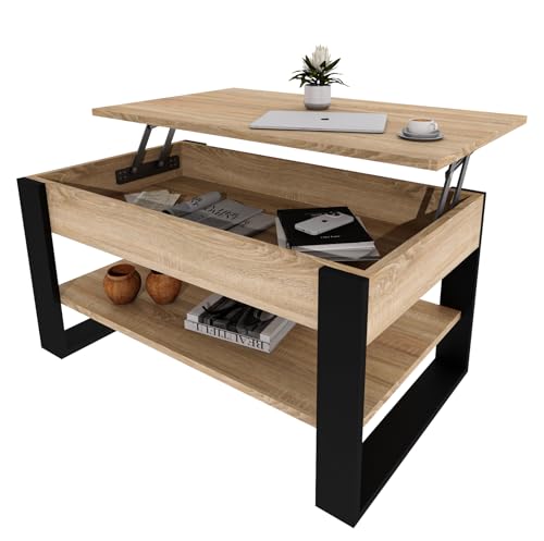 Abstandslos ausziehbarer Tisch: Dieser einzigartige Couchtisch hat eine ausziehbare Platte, die sich nach oben hebt, um eine schwebende, erhöhte Arbeitsfläche zu schuften, und eignet sich perfekt zugunsten kleinere Wohnräume denn Schlafsäle oder Studios.