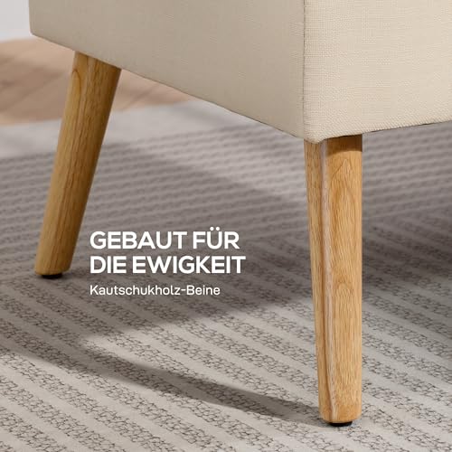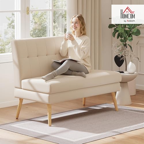 HOMCOM Sofa 2 Sitzer Couch mit Leinenoptik, Getuftete Rückenlehne Kleine Polstersofa Modern 118 cm Gepolstert Doppelsofa mit Holzbeine für Wohnzimmer, Kleine Räume, Beige
