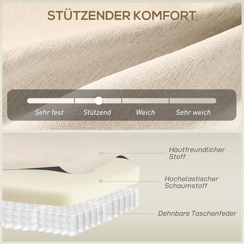 Unterstützung und Komfort: Ein Sitz mit Doppelschicht, Taschenfedern und dicker Schaumstoffpolsterung (13 cm Sitzhöhe, 11 cm Rückenhöhe) sowie ein atmungsaktiver Stoff in Leinenoptik machen dieses Zweisitzer-Sofa besonders bequem, ideal zum Entspannen beim Filmabend oder beim Plaudern mit Freunden