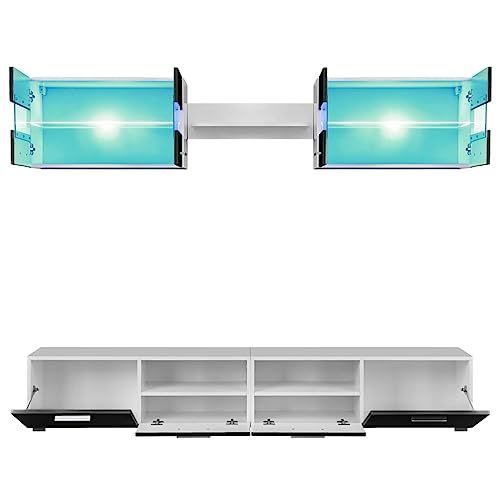 Dieses Wohnwand-Set wird eine große Bereicherung für Ihr Wohnzimmer sein und wird den Kosmos ohne Abstriche bei Stil optimieren. Das Set, bestehend aus 2 Wandschränken, 1 Display-Regal und einer aus 2 Schränken bestehenden TV-Einheit, bietet ausreichend Platz für Ihre Multimedia-Geräte, DVD-Player, Medienträger, Bücher und Kleinigkeiten aller Art. Es ist aka ideal für die Präsentation von dekorativen Objekten, Bilderrahmen oder sogar Topfpflanzen. Jeder Wandschrank hat ein Glasregal, das mit energieeffizienter LED-Beleuchtung ausgestattet ist, um eine verführerische Atmosphäre zu sich abrackern. Die TV-Schränke verfügen über Klapptüren Unser Wandschrank-Set besteht aus hochwertigem, hochglanz-schwarz lackiertem Holzwerkstoff mit Metallgriffen und -füßen, was ihm eine zeitgemäße Optik verleiht, die zu jedem Dekor passt. Der Zusammenbau ist einfach. Bitte verfemen Sie, dass die TV-Einheit aus 2 Schränken besteht.