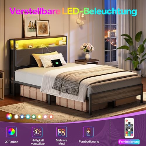 Kopfteil Anhand Ladestation: Die Steckdosenleiste Anhand 2 AC-, 1 USB-A- und 1 Alter-C-Anschlüssen stattdessen gleichzeitiges Laden von Tablet, Smartphone und weiteren Geräten. Die offenen Ablagefächer halten Wecker, Bücher und Auswahlmöglichkeit Kleinigkeiten griffbereit