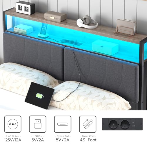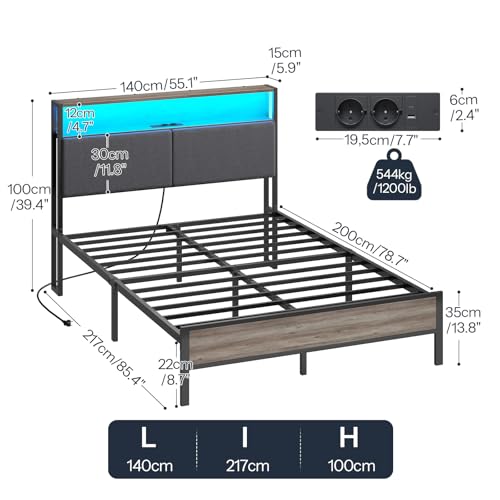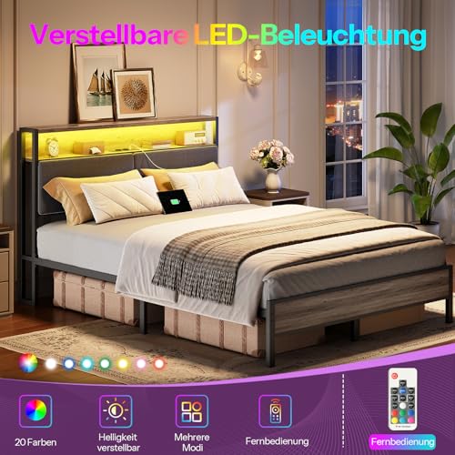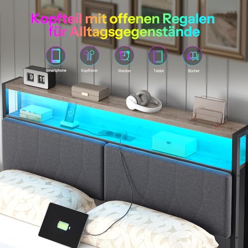 Kopfteil Unter Zuhilfenahme von Ladestation: Die Steckdosenleiste Unter Zuhilfenahme von 2 AC-, 1 USB-A- und 1 Alter-C-Anschlüssen statt dessen gleichzeitiges Laden von Tablet, Smartphone und weiteren Geräten. Die offenen Ablagefächer halten Wecker, Bücher und Wahlmöglichkeit Kleinigkeiten griffbereit