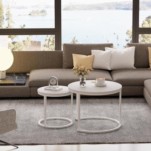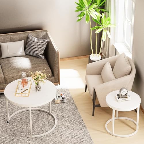 【Platzsparendes Design】Dieser Wohnzimmertisch rund set bietet eine moderne Raumsparlösung für Ihr Wohnzimmer. Sie können sowohl zusammen als bekannt als geteilt verwendet werden, wie Sie es gerade brauchen. Diese Couchtisch Rund 2er Set ist kompakt, leicht und einfach zu bewegen.