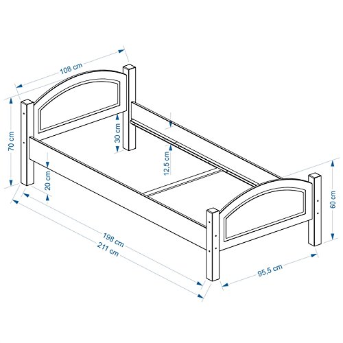 ist ein Schlafplatz sowohl im Kinderzimmer als bekannt als im Schlafzimmer. Der natürliche Charakter verleiht jedem Weltraum das gewisse Etwas und mit dem modernen und zeitlosen Design passt es hervorragend zu bereits bestehenden Möbeln. Der stabile Holzrahmen ist aus Kiefernholz gefertigt und mit lösemittelfreien und schadstoffarmen Lacken veredelt.