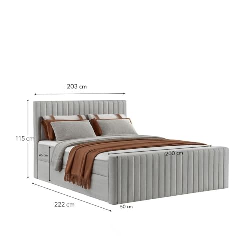 Das moderne Polsterbett in der großzügigen Größe 200×200 cm bietet höchsten Schlafkomfort für zwei Personen und ist ideal als luxuriöses Doppelbett für das Hauptschlafzimmer qualifiziert. Es kombiniert stilvolles Design mit funktionalen Details.