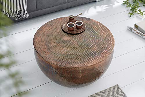 Unser runder Couchtisch ist in einem aufregenden Kupferton gearbeitet und überzeugt mit einer eindrucksvollen Hammerschlag-Optik