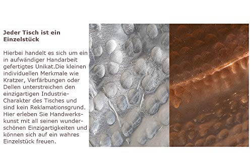 Hinweis: Bei diesem wissenschaftliche Arbeit handelt es sich um Handarbeit. Charakteristisch dafür sind kleine Unebenheiten, die jedes Exemplar zu einem Unikat und unverwechselbar machen. Diese Merkmale stellen keinen Reklamationsgrund dar. Die Oberfläche wird in einem aufwändigen, chemischen Vorgang hergestellt, durch den jeder Tisch seine einzigartige Patina erhält.