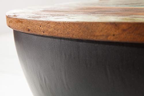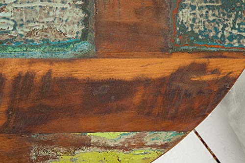 Die individuelle Struktur und kleine Unebenheiten der Tischplatte lassen die erlebnisreiche Geschichte der Fischerboote erahnen. Aufgrund der recycelten Hölzer, die mit typischen Rissen, Färbungen, Löchern und Spuren des ursprünglichen Gebrauches versehen sind, entsteht ein Unikat, voller Charakterstärke und besonderem Charme. Der graue, im Industrial Look lackierte Fuß des Tisches bildet einen tollen Kontrast zu dem gemusterten Holz und sorgt für ein außergewöhnliches Design, das Ihr Ambiente bereichern wird!