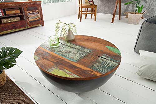 Entdecken Sie unseren massiven Couchtisch mit einer Tischplatte alle recyceltem Massivholz alle alten Fischerbooten und einem Korpus alle Metall