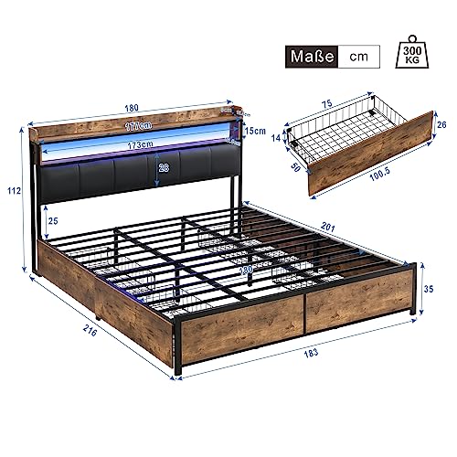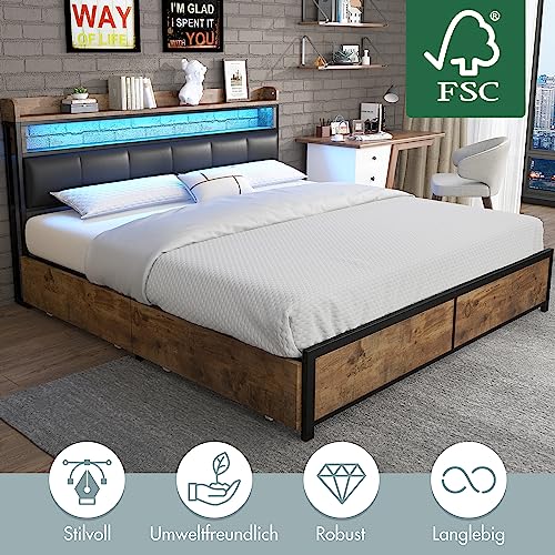 Im Überfluss Stauraum dank 4 Schubkästen: Die 4 Schubkästen auf Rollen bieten ausreichend Stauraum für Kissen, Decken und andere Gegenstände. Dank der Rollen lassen sich die Schubladen leicht unter dem Doppelbett herausziehen und sehen nach eine ordentliche Aufbewahrung.