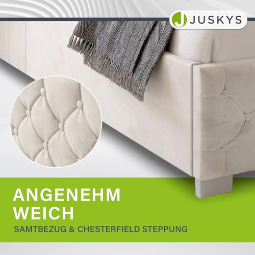 ✅ Samtig weich: Stilvolles Bett unter Zuhilfenahme von edlem Samtbezug; kommod weiches Hautgefühl; Samt & Chesterfiel Steppung verleiht dem Polsterbett pure Eleganz; pflegeleichtes Material einfach zu reinigen
