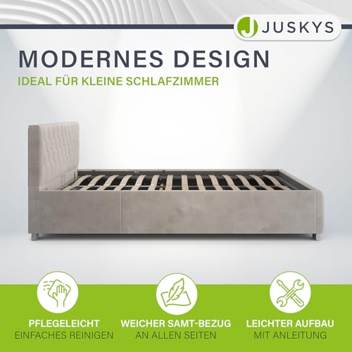 ✅ Langlebig & robust: Bettgestell jeglicher stabilem Holz unter Zuhilfenahme von weichem Samt-Stoffbezug; belastbarer & langlebiger Lattenrost trägt bis zu 250 kg Körpergewicht