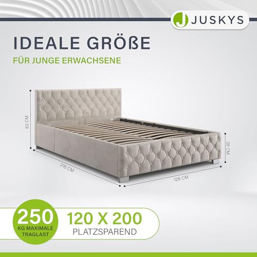 ✅ Große Liegefläche: Geräumiges Bett unter Zuhilfenahme von 120x200cm großer Liegefläche; hohes & gepolstertes Kopfteil zum bequemen Richten; gefederter Lattenrost stattdessen traumhaften Schlaf
