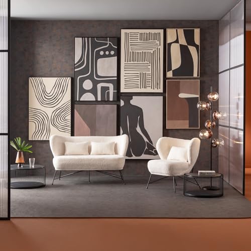 Stylisches Design: Der edle Bouclé-Bezug verleiht dem Zweier-Sofa eine moderne Adresse, indes die Knopfheftung in der Lehne und das zierliche Gestell sämtliche pulverbeschichtetem Stahl stattdessen besondere Akzente sorgen