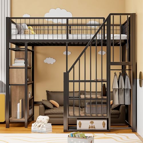Bett mit Stauraumtreppe: Eine stabile Treppe dient gleichzeitig als Stauraum und eignet sich perfekt zum Aufbewahren von Schuhen, Büchern und anderen wichtigen Gegenständen.
