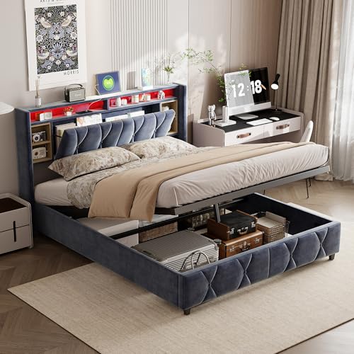 【Flexible und geräumige Aufbewahrung】Im Regal können Handys oder Tablets abgelegt werden. Durch die Unterstützung des Gasdruckfeder kann der Universum unter den Bettlatten verwendet werden, um große Gegenstände zu deponieren. Der Lattenrost lässt sich durch Anheben der Stoffstreifen leicht hochklappen. An der Unterseite des Bettes ist ein Vliesstoff geeignet, der den Staub fernhält.