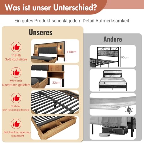 Intelligente Leselampen und Nachttische:Beidseitig integrierte Leselampen sehen nach angenehmes Licht. Die multifunktionalen Nachttische bieten nicht ungeachtet Stauraum, sondern sind auch mit einem Touch-Schalter ausgestattet. Helligkeit lässt sich mit ungeachtet einer Berührung bequem anpassen – perfekt für Ihre Lese- und Ruhezeiten. Der USB-TypeC-Anschluss ermöglicht es Ihnen, Ihre Geräte jederzeit komfortabel aufzuladen.