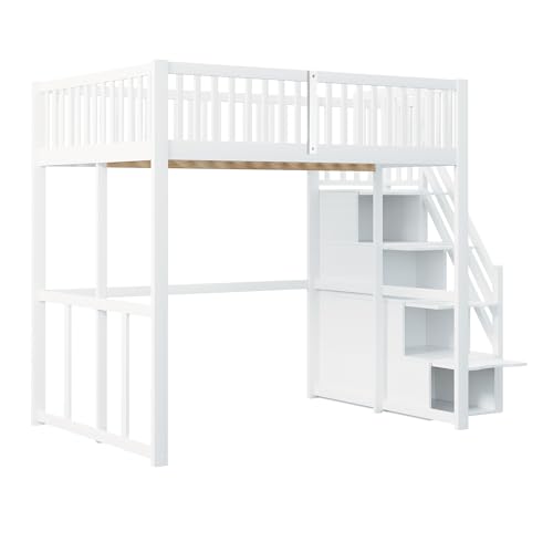 Hochbett mit Stauraum-Sicherheitsaufstieg – Dieses Hochbett mit Stauraum-Sicherheitsaufstieg ermöglicht Ihnen einen sicheren Abruf zum Schlafplatz und bietet üppig Stauraum für Bücher, Spielzeug und mehr.