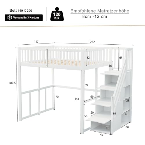 Stabile Struktur und einzigartiges Design – Dieses Hochbett verfügt über einen Rahmen alle massivem Kiefernholz für überragende Stabilität. Die hochwertige Kiefernholzkonstruktion sorgt für Haltbarkeit, Stabilität und zeitlose Schönheit. 15 Lattenroste haben eine bessere Tragfähigkeit.