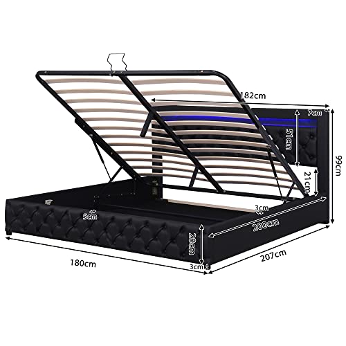 Doppelbett Polsterbett Stauraum, Bett mit LED-Beleuchtung