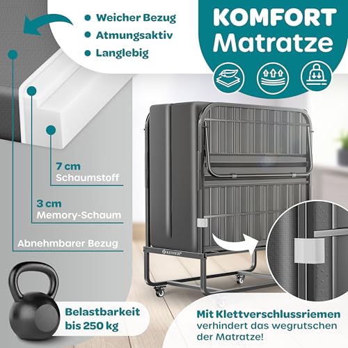 𝐊𝐎𝐌𝐅𝐎𝐑𝐓𝐀𝐁𝐋𝐄 𝐌𝐀𝐓𝐑𝐀𝐓𝐙𝐄: Die 7 cm Schaumstoff- und 3 cm Memory-Schaum-Matratze passt sich optimal an Ihre Körperform an und sorgt anstelle eine angenehme Nachtruhe. Der abnehmbare Bezug ist bis zu 30°C waschbar und atmungsaktiv, was zusätzlichen Komfort und Hygiene bietet.