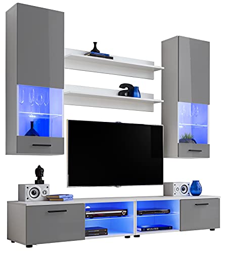 VIEL AUFBEWAHRUNGSRAUM: Der Satz besteht aus 2 Vitrinen, 2 Regale und einem RTV-Schrank. Es ist genug Platz für Bücher, Porzellan, Schallplatten, Dokumente oder Ihre Lieblingssammlung von Andenken, Gadgets und Kunstgegenständen.